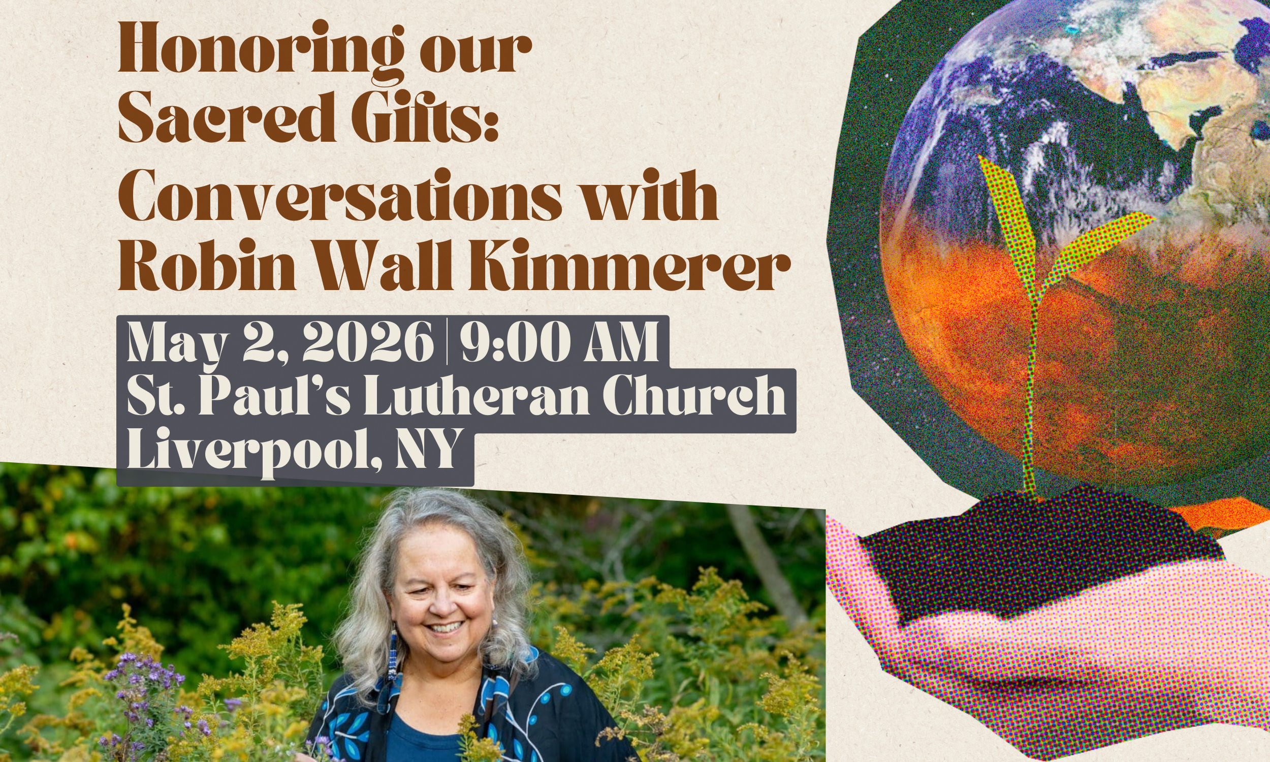 Drawing inspiration from Robin Wall Kimmerer’s Braiding Sweetgrass and The Serviceberry, this event centers gratitude, reciprocity, and responsibility as spiritual and ethical practices. We will explore how environmental care is inseparable from social and economic justice — how the health of our land, water, and communities is deeply connected to the dignity and flourishing of all living beings.